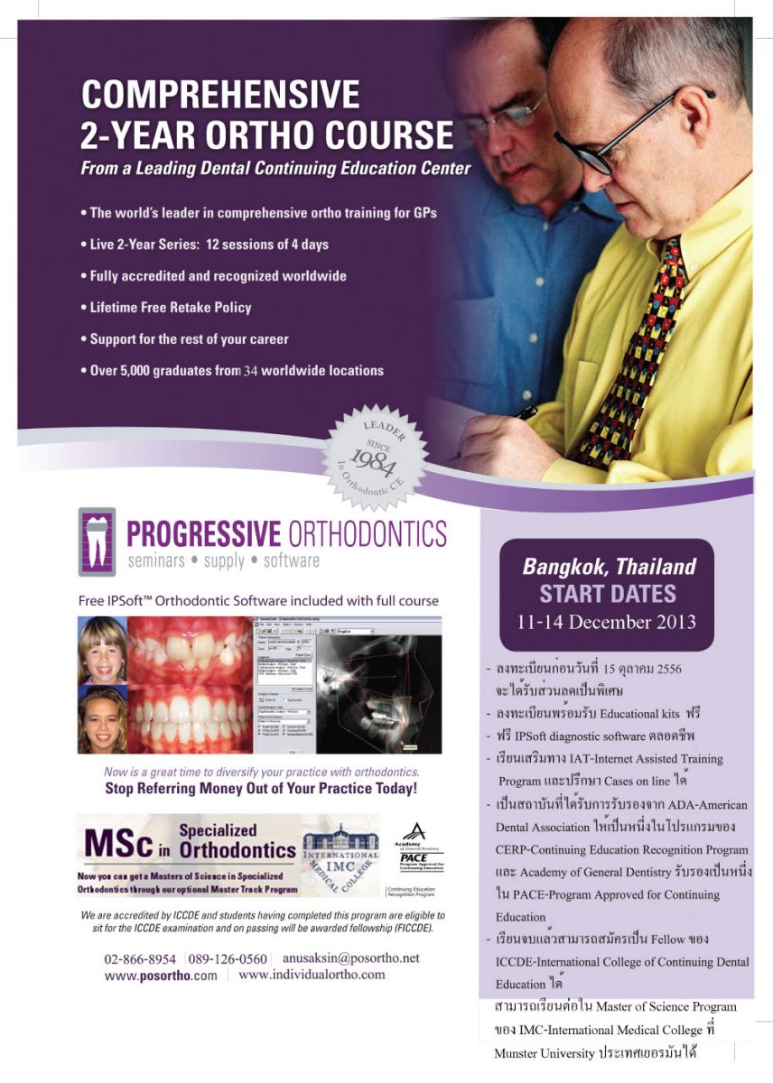 Comprehensive 2-year ortho course เริ่มในวันที่ 11-14 ธันวาคม 2013
